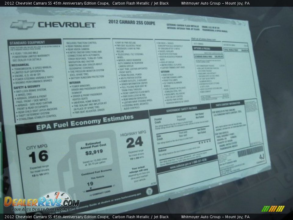 2012 Chevrolet Camaro Ss Coupe Window Sticker Photo 62555431 gtcarlot.com