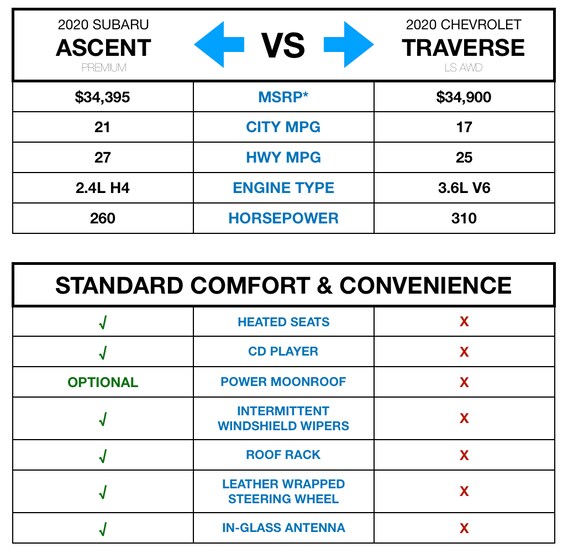 Compare Subaru Ascent Vs Chevy Traverse Placer Subaru In Helena Mt